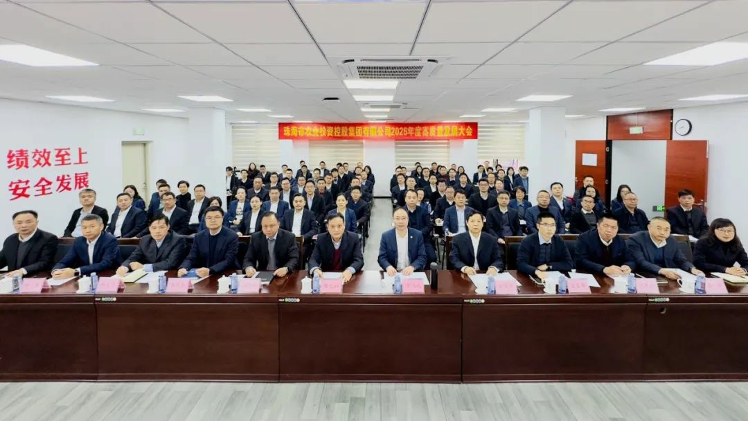 2025年2月8日,珠海农控集团召开2025年度高质量发展大会,深入贯彻落实习近平总书记视察广东、澳门重要讲话精神,继续围绕省市战略部署,围绕市委“1313”思路举措,统一思想、凝聚信心,全面总结过去发展成果,明确集团发展战略和目标,部署当前和今后一个时期重要工作任务。市国资委一级调研员、联系服务农控集团领导、董事陈元和出席会议并讲话,集团党委书记、董事长李鸿斌作主题报告,集团党委副书记、总经理冯能斌作2025年经营管理工作部署,集团党委副书记刘国涛主持会议。