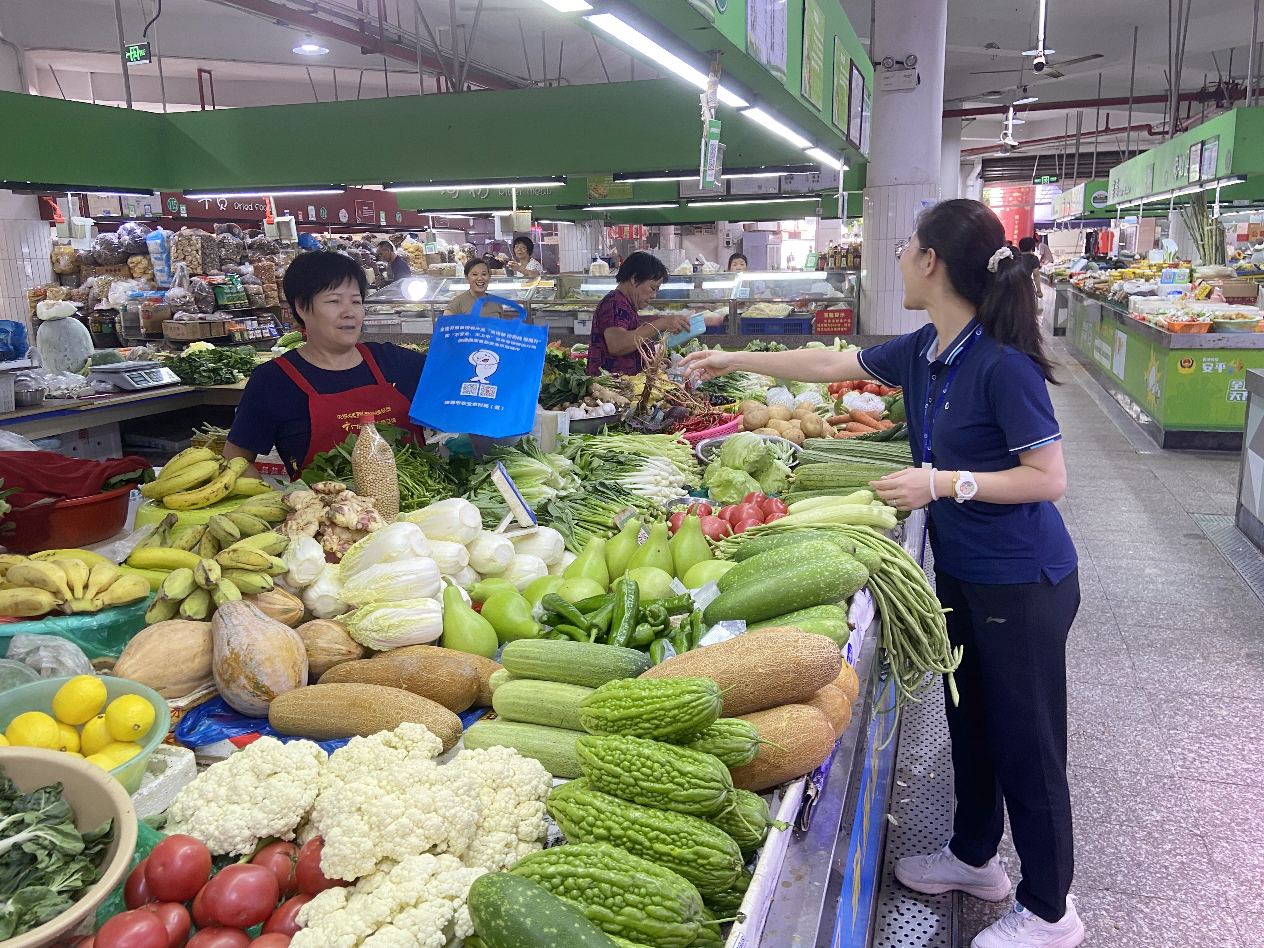 近日,珠海农控集团旗下为农市场联合珠海市农业农村局“普法小队”,聚焦“优价”“安全”两大目标,在市民家门口组织“法治课堂”,面向市场经营户和消费者共同开展了《农产品质量安全法》宣贯活动。立足农贸市场服务“小窗口”,做实城市食安共建共治“大文章”。
