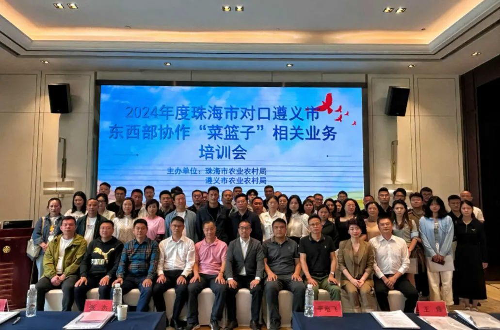 4月2日,由遵义市农业农村局、珠海市农业农村局、粤黔协作遵义工作组联合主办,珠海农控农产品物流园有限公司、珠海农控供港澳农产品检测技术有限公司承办的2024年度珠海市对口遵义市东西部协作“菜篮子”相关业务及农产品供港澳外贸培训会在遵义成功举办。珠海市农业农村局、珠海市市场监督管理局、遵义市农业农村局、珠海农控农产品物流园菜篮子有限公司相关领导及遵义市种养殖企业(专业合作社)、珠海市农产品供应链管理协会企业代表等共80余人参加了本次培训会。