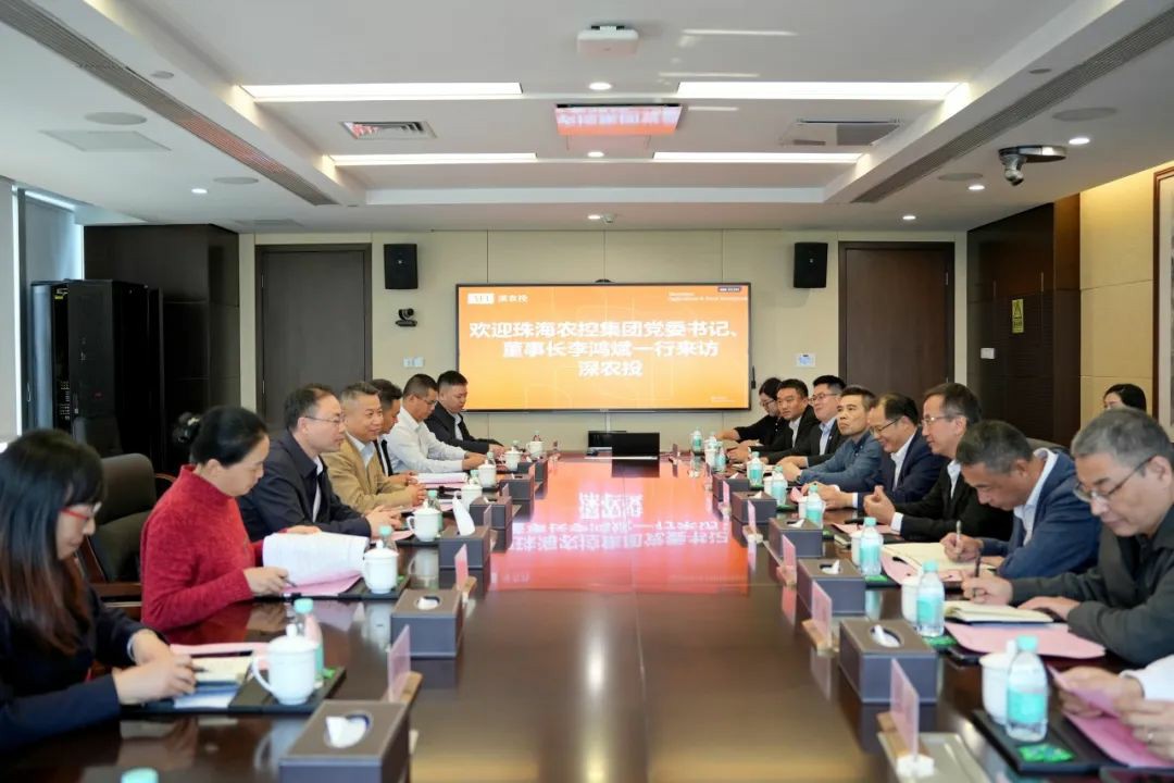 3月19日,珠海农控集团党委书记、董事长李鸿斌一行拜访深圳农业与食品投资控股集团有限公司(以下简称“深农投”),与深农投党委书记、董事长黄伟座谈交流。