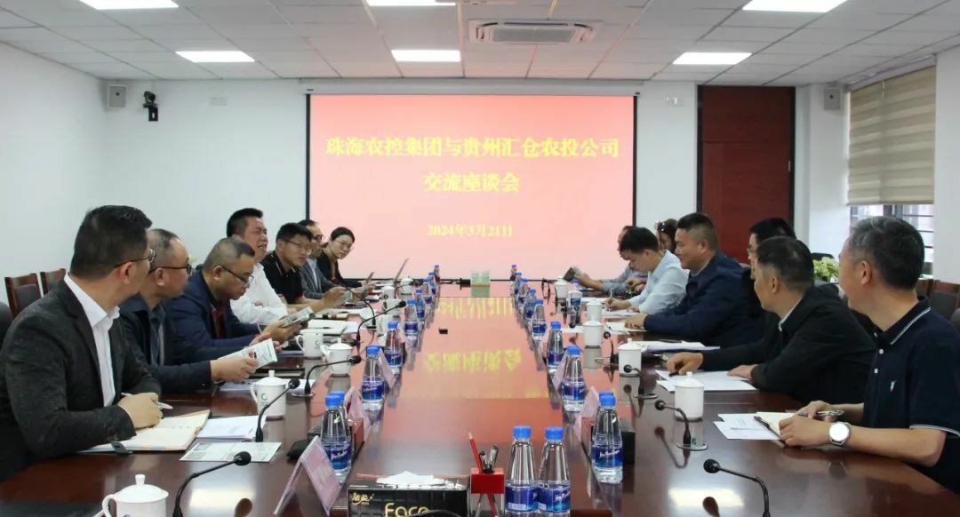 3月21日-22日,贵州汇仓农业产业投资有限公司(简称:汇川区农投公司)董事长敖弟奎一行到珠海农控集团及下属企业调研座谈。珠海农控集团副总经理王春锦,粮食集团、食出公司和物流园公司以及集团相关部门负责人参加座谈会。