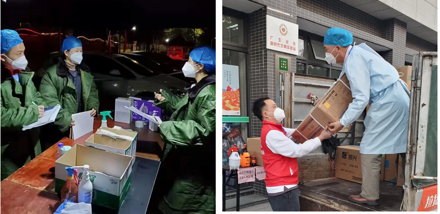 农控集团支援南屏管控区域、封控区域抗疫志愿者继续协助社区进行大规模核酸采样、24小时轮班值守门岗,以及防疫物资搬运、发放、登记和场地消杀。与医护人员、公安民警、社区工作者和人民群众一道携手同心、并肩奋战。