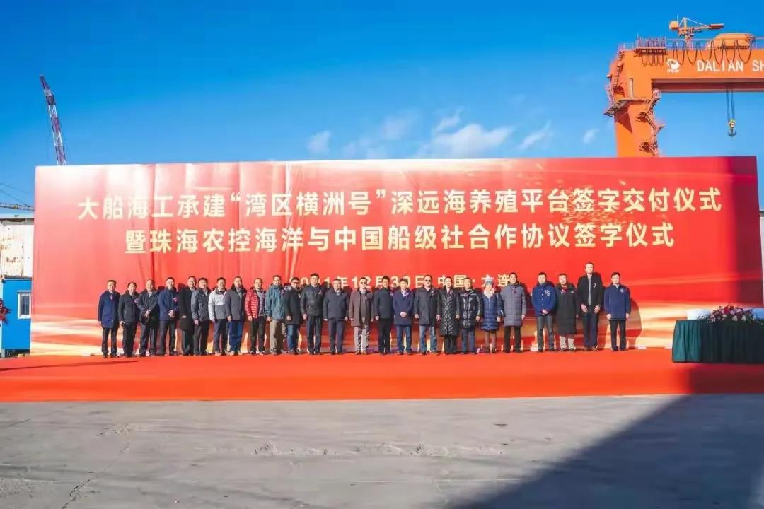 12月30日上午,珠海农控集团投资建造的大型深远海养殖平台“湾区横洲号”交付签字仪式在辽宁省大连市大船海工举行。根据计划,该平台将于2022年1月4日从大连拖航回珠海,预计2022年1月15日左右拖至珠海横洲海域进行安装调试 ,3月中旬投入使用。